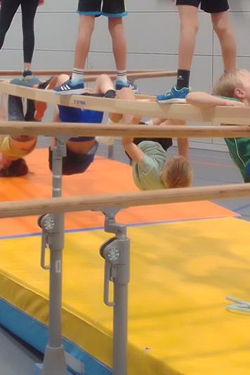 Bildunterschrift: Böse Schurken zwingen die Helden, sich an die Brücke über dem Abgrund im Dschungel zu klammern. Die Kinder der Ninjasportgruppe des TV Windecken üben für die Turngala „Turnflix” am 29. November in der Großsporthalle der Bertha-von-Suttner-Schule an ihrer Interpretation des Blockbusters „Jumanji”.