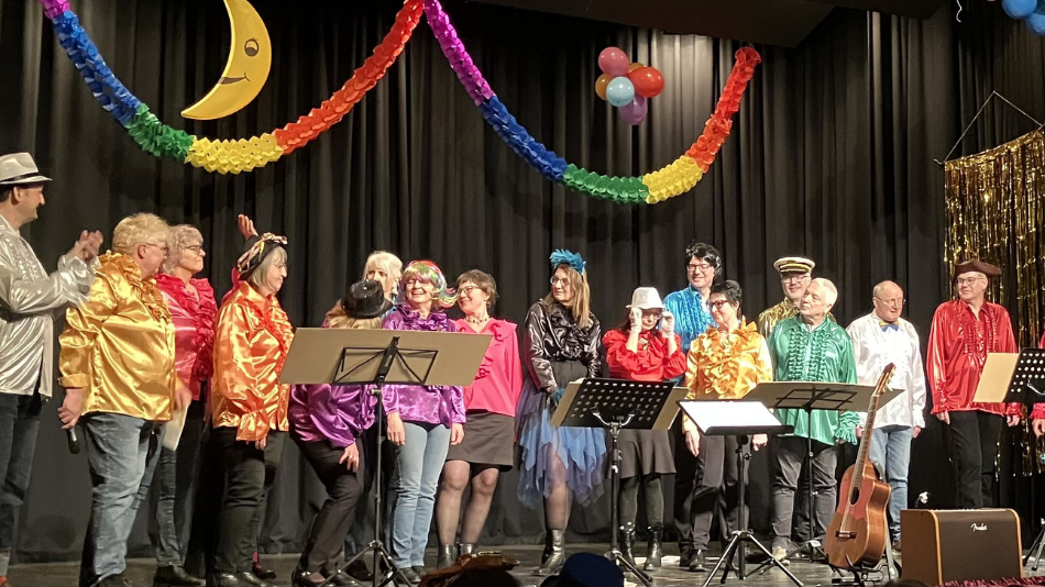 Das Moderatoren-Duo Thomas Hohmann und Markus Bernard führte gewohnt charmant durch den Abend. Den fulminanten Auftakt machten die „Jumpies“ der Sportfreunde Ostheim mit einem temporeichen Tanz. Direkt im Anschluss übernahm Simone Schneider als Protokollantin das Wort: Sie sezierte das vergangene Jahr und verteilte mit viel Fingerspitzengefühl Seitenhiebe auf die Bundes- und Lokalpolitik. Musikalisch und inhaltlich tiefgründig wurde es beim Ave-Eva-Chor unter der Leitung von Michael Hampel. Mit umgedichteten Songs thematisierten die Sängerinnen den Abschied von Pfarrer Ifeanyi Emejulu, seinen Weggang in die „Pampa an den Edersee“ sowie die bevorstehende Gründung der Großpfarrei. Auch die bevorstehende Kommunalwahl und die Arbeit der neuen Bundesregierung wurden pointiert thematisiert.