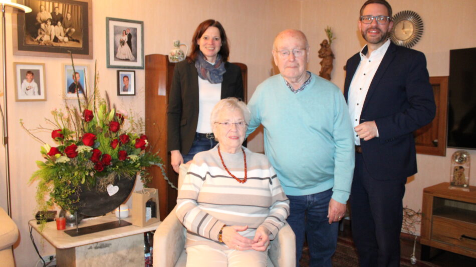 Verbunden mit seinen Glückwünschen betonte der Landrat, dass es heutzutage bemerkenswert sei, so lange verheiratet zu sein „und glücklich und putzmunter dieses Ehe-Jubiläum zu feiern“. „Das spricht für Treue, für innige Liebe und auch für ein erfülltes, lebendig haltendes Leben. Ich wünsche Ihnen, sich all das zu bewahren und zu pflegen“, sagte Thorsten Stolz.