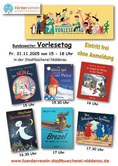 Unter dem Motto „Vorlesen spricht Deine Sprache“ lädt der Förderverein der Stadtbücherei Nidderau e.V. am Freitag, den 21. November, von 15 bis 18 Uhr zu einem abwechslungsreichen Vorlesenachmittag ein. Anlass ist der Bundesweite Vorlesetag, der jedes Jahr Jung und Alt in ganz Deutschland zum Zuhören, Mitmachen und Staunen einlädt. Das Motto hebt die verbindende Kraft des Vorlesens hervor und sendet eine klare Botschaft: Nutz Deine Sprache, nutz Deine Stimme und lies vor!
