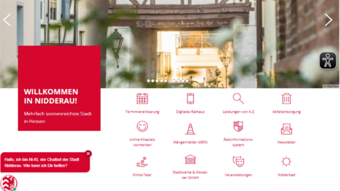 Die Fortschritte der Stadt Nidderau in den Bereichen „Smart City“ und Digitalisierung sind bereits mehrfach bundesweit gelobt worden. Eine kleine, aber entscheidende Neuerung ist hinzugekommen. Auf der Internetseite http://www.nidderau.de steht ab sofort ein Chatbot zur Verfügung. Die virtuelle Assistenz mit dem Namen Ni-KI steht für Nidderau-Künstliche Intelligenz. Sie soll den Bürgerinnen und Bürgern die Suchfunktion auf der Webseite erleichtern. „Ni-KI ist eine gelungene KI-Ergänzung unserer digitalen Präsenz und vereinfacht die Navigation auf der Internetseite der Stadt erheblich“, sagt Bürgermeister Andreas Bär.