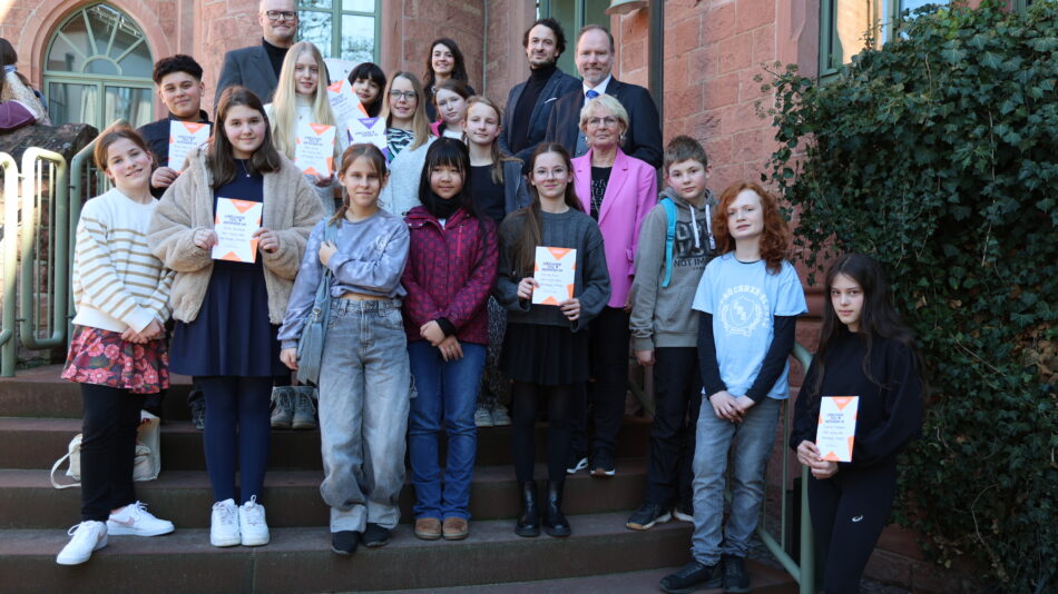 Zur Siegerehrung kam auch Gelnhausens Bürgermeister Christian Litzinger, der allen Teilnehmenden gratulierte und ihnen seine Anerkennung zollte. Jede Schülerin und jeder Schüler erhielt eine Teilnahme-Urkunde und einen „Kulturbeutel“ mit Info-Material zur Bücherei und zur Stadt Gelnhausen sowie je eine Ausgabe von „Rocky Winterfeld“. Die Jury hob noch einmal das große Potenzial aller Vorleserinnen und Vorleser hervor, was die Spannung bis zur Bekanntgabe der Siegerin weiter steigerte. Schließlich fiel der Name: Luna Keller vom Albert-Einstein-Gymnasium Maintal ist eine Runde weiter und wird ihre Schule beim Bezirksentscheid vertreten. Der Wettbewerb geht dann auf Landesebene weiter und endet schließlich mit dem Bundesfinale in Berlin.